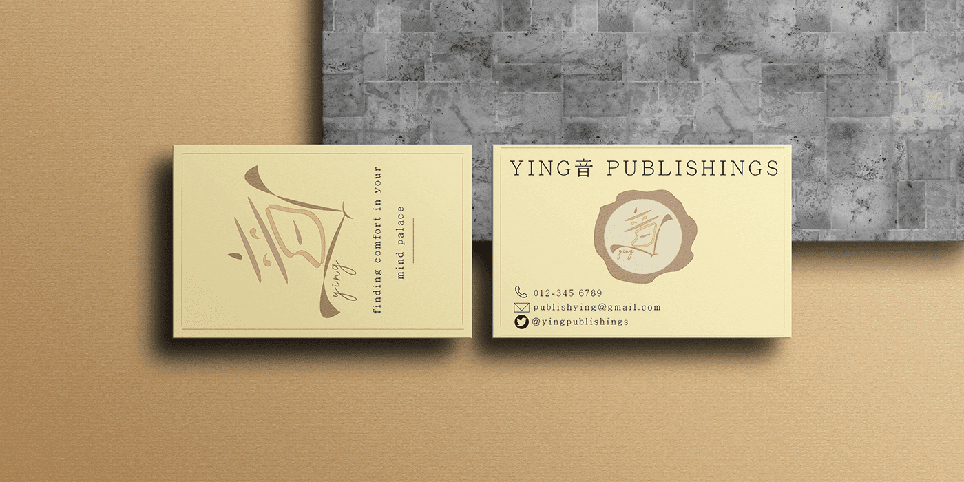 I’ve designed brand identity designs such as name card, envelope and letterhead, to represent a personal brand, Ying音Publishings. Ying音Publishing is a Young Adult fiction book publishing company that provides authors a platform to express their voice in their stories. The name 音 is the last character of my chinese name, which means voice. Therefore, this brand has both a personal meaning to my name and the voice of authors that I’d like to advocate to the public through my publishing company.