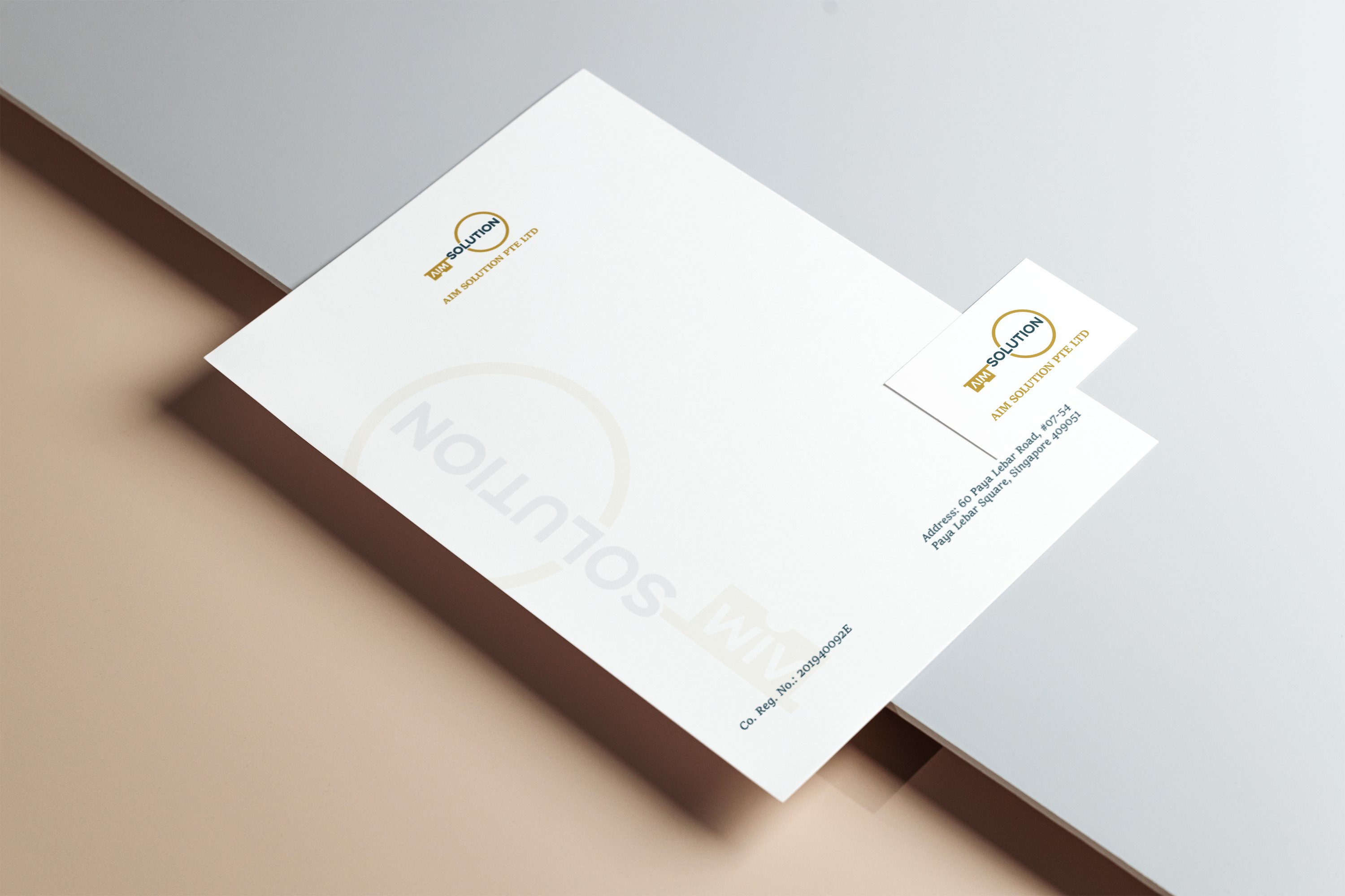 I've designed several branding design items for Aim Solution Pte Ltd for their recent logo redesign. This branding package was made as part of a freelance service while communicating with the head of Aim Solution, Milcah Lee. The branding package included designs for envelope, email signature, certificate, PowerPoint Presentation template, and invoice template.