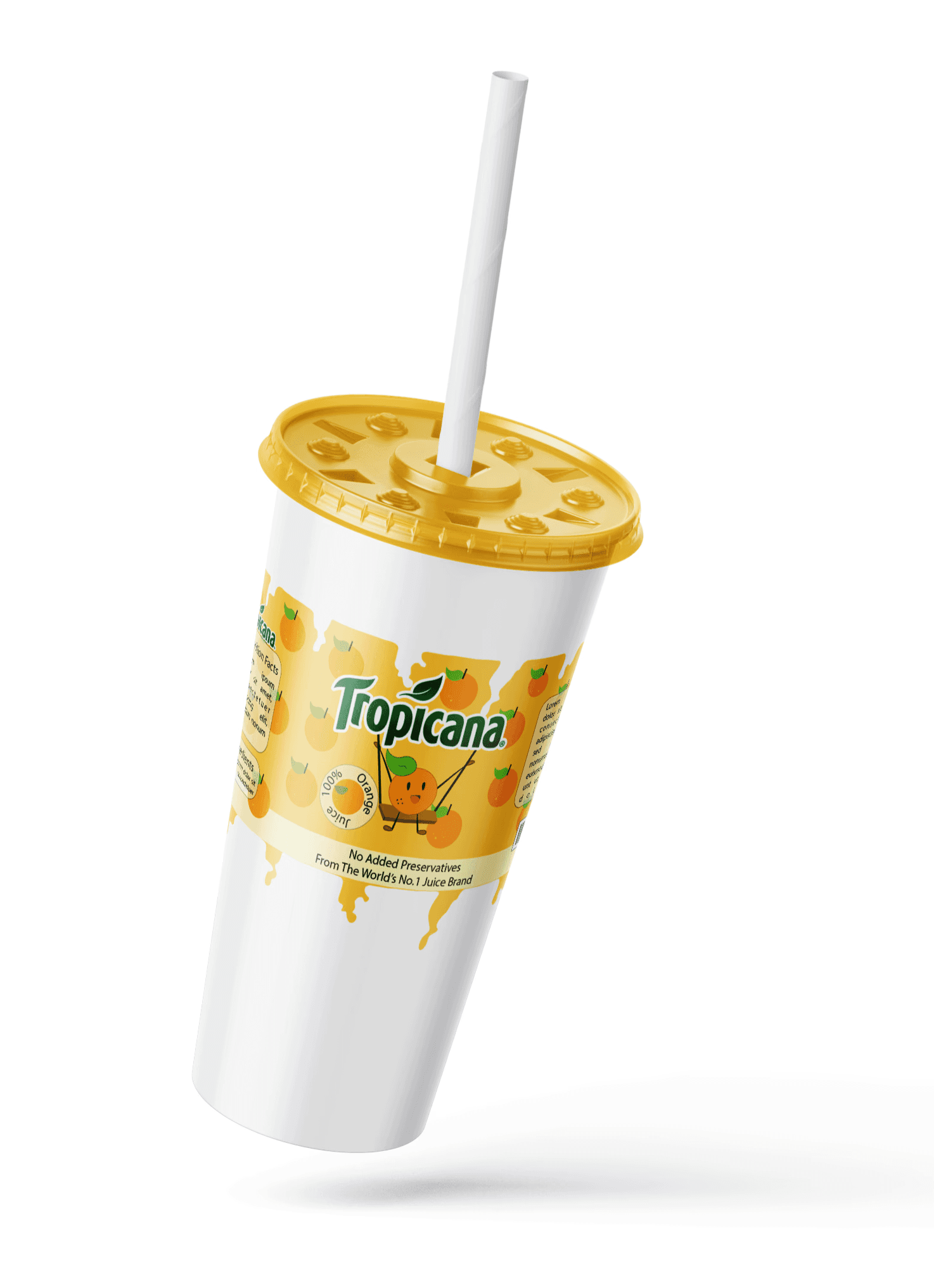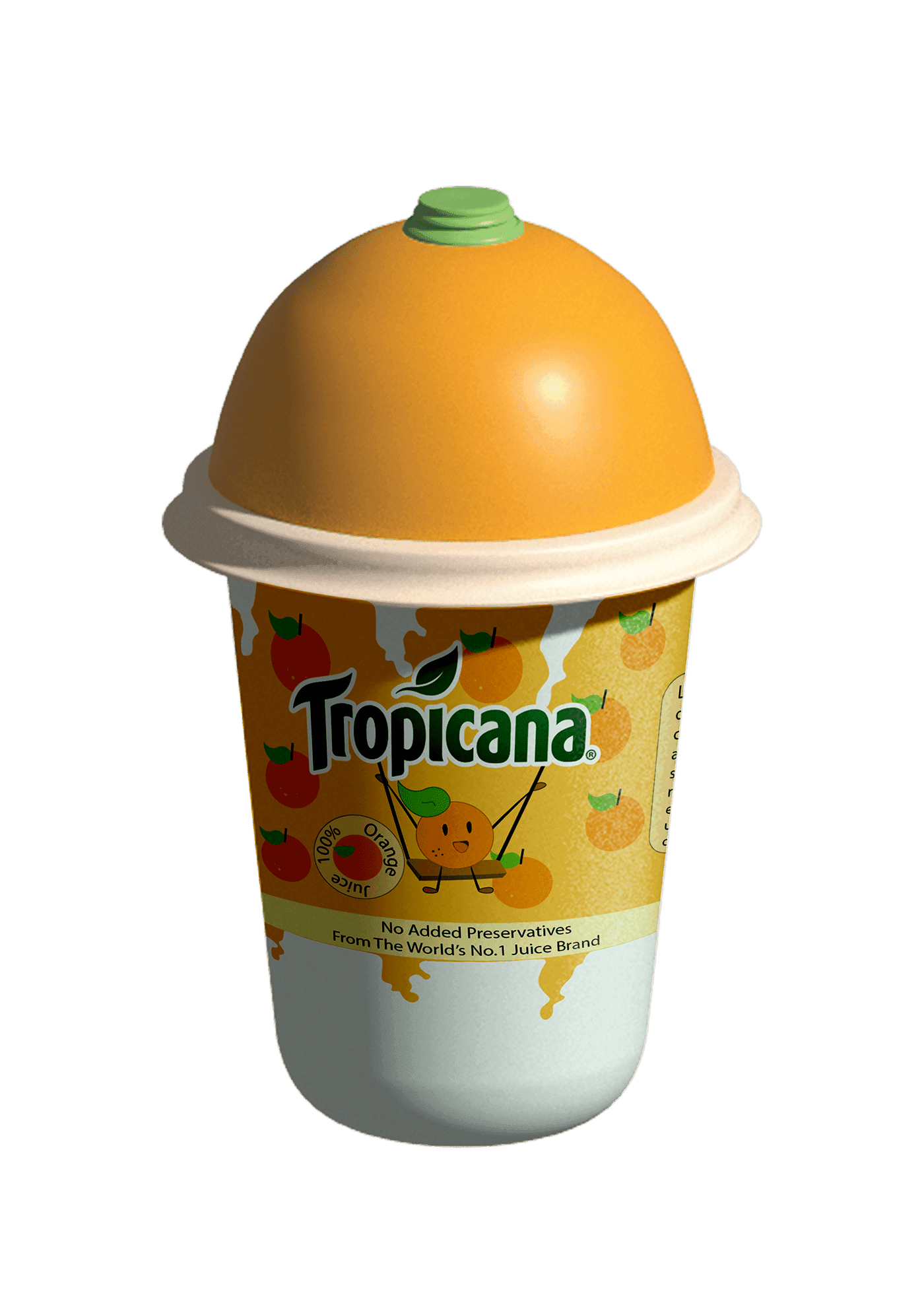Tropicana Orange Juice is known for its signature orange and straw as the main imagery for every packaging, hence I maintained it’s straw concept by making the packaging look like a “Boba Milk Tea” cup with a lid that can place the straw through the top that visually looks like an orange. The label design uses a cute orange mascot on a swing as the subject to represent a fun look for the brand, followed by an orange pattern in the background and liquid-like lines for the “juice” effect.